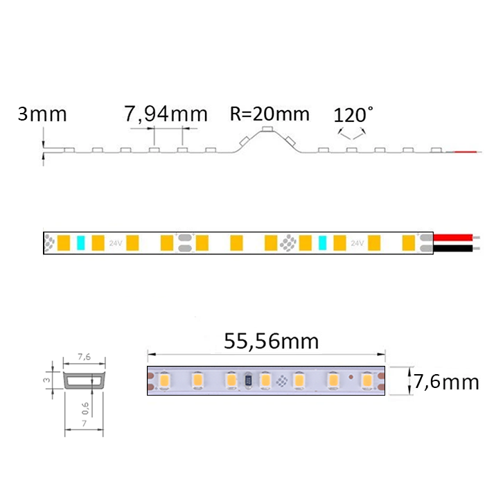SLIM bílý LED pásek 24V Lux Miners | IP65 | 8W | 126LED | CRI80+