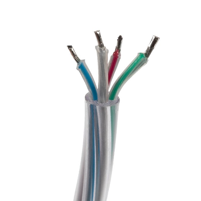 RGB kabelová spojka 4x0,3mm2 s IP krytím IP65. Tato propojovací sada může usnadnit napojení RGB ledkové pásky ke zdroji napětí nebo LED ovladači. Připojení napájecího konektoru doporučujeme provádět pájením.