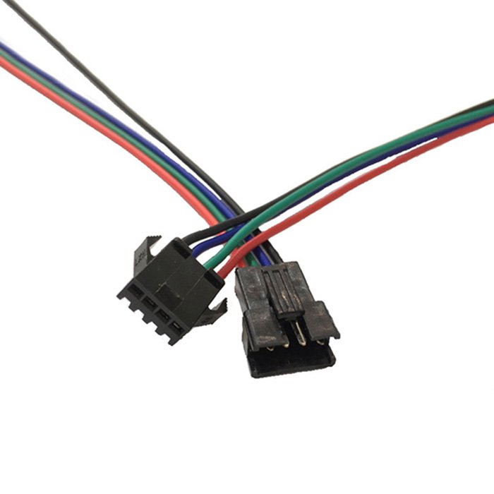 RGB kabelová spojka 4x0,2mm2 s konektorem. Tato propojovací sada může usnadnit napojení RGB ledkové pásky ke zdroji napětí nebo LED ovladači. Připojení napájecího konektoru doporučujeme provádět pájením.