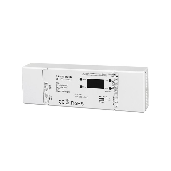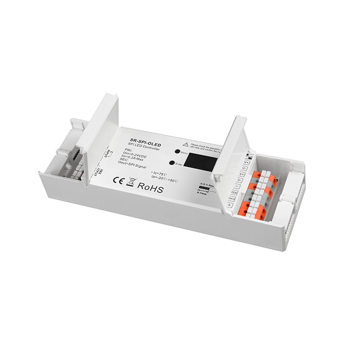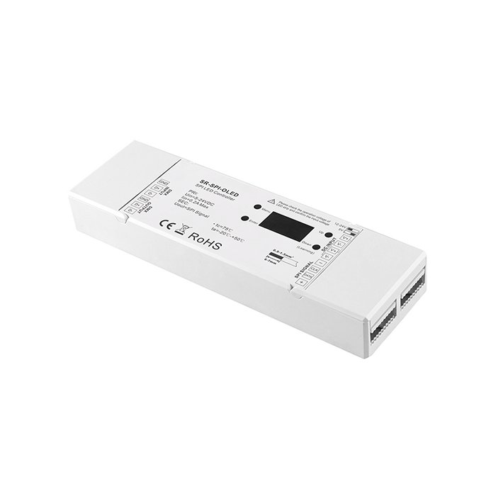 LED SPI stmívač SR-SPI-OLED poskytuje přesné ovládání profesionální úrovně. Díky široké kompatibilitě SPI rozhraní s širokým spektrem digitálních LED pásků je možné jej snadno integrovat do stávajících nebo nových světelných systémů jakéhokoliv rozsahu.