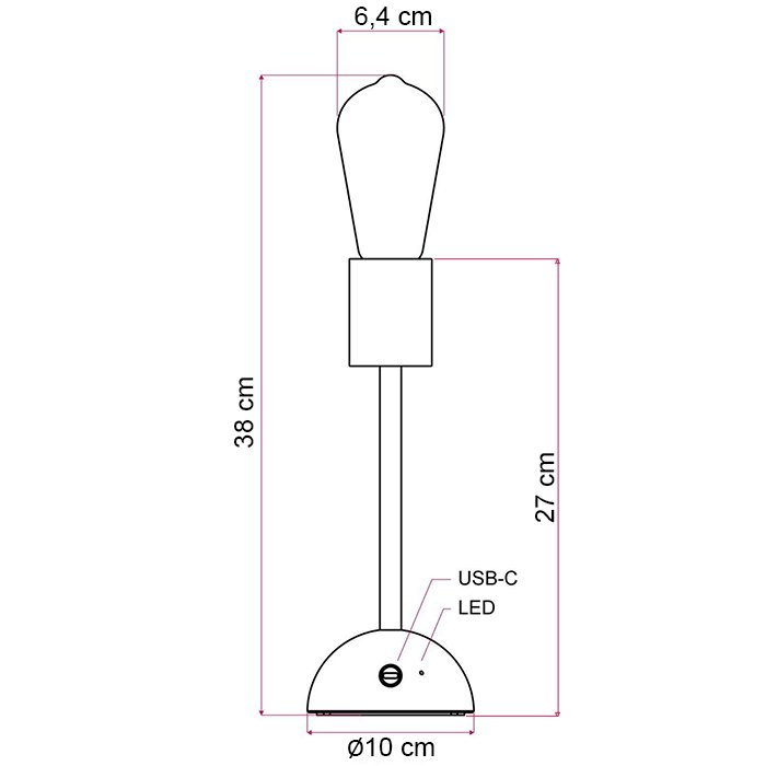 Stolní lampa na baterie Cabless02 se žárovkou 5V velikosti ST64 je přenosným svítidlem s mimořádně univerzálním použitím. Vyniká kvalitním zpracováním a materiály, které prošly důkladnou selekcí. Naším cílem bylo stvořit dokonale modulární přenosné světlo s nabíjením pomocí USB-C. Baterie typu Li-ion 18650 je součástí balení.