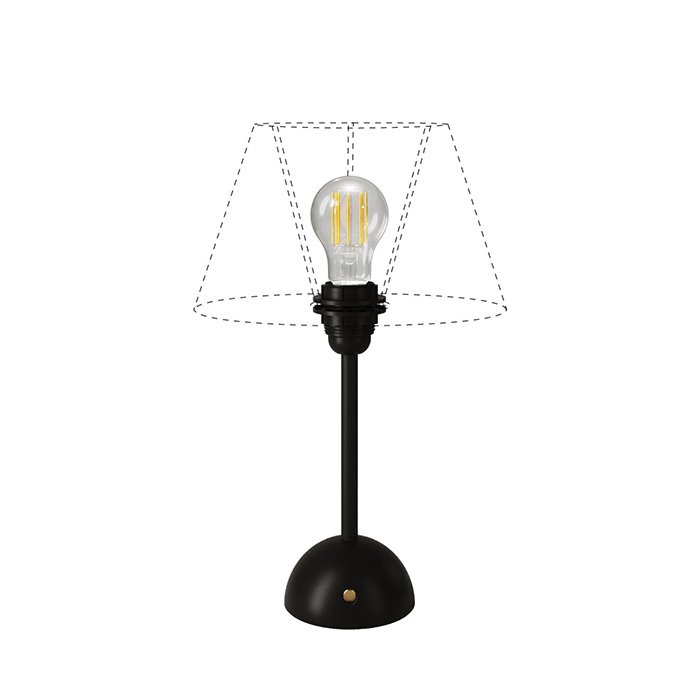 Přenosná stolní lampička Cabless02 se žárovkou A60 nevyžaduje žádnou speciální montáž. Její sestavení je snadné.