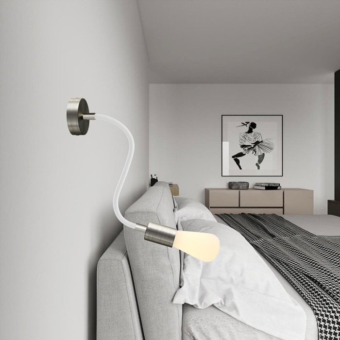 Opletený povrch z jemné Rayon textilie (umělé hedvábí) dodává kovovému husímu krku s robustní mechanikou mimořádný vzhled, díky kterému se stává nejen funkčním, ale i estetickým prvkem interiéru.