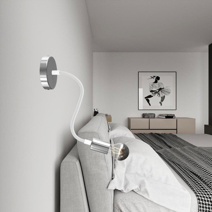 Stříbrné flexibilní rameno pro lampy a kreativní světelné instalace Flex RM02 je skvělou volbou pro všechny, kteří chtějí vytvářet originální svítidla nebo experimentovat s různými způsoby montáže osvětlení. Umožňuje naklánění, otáčení i tvarování a je vybaveno závitovou trubkou M10 na obou koncích. Uvnitř ramene je již zavlečen vodič 2×0,75 mm², který na obou stranách vyčnívá, což usnadňuje připojení komponent, jako jsou stropní či nástěnné krytky pro svítidla nebo objímky na žárovky.