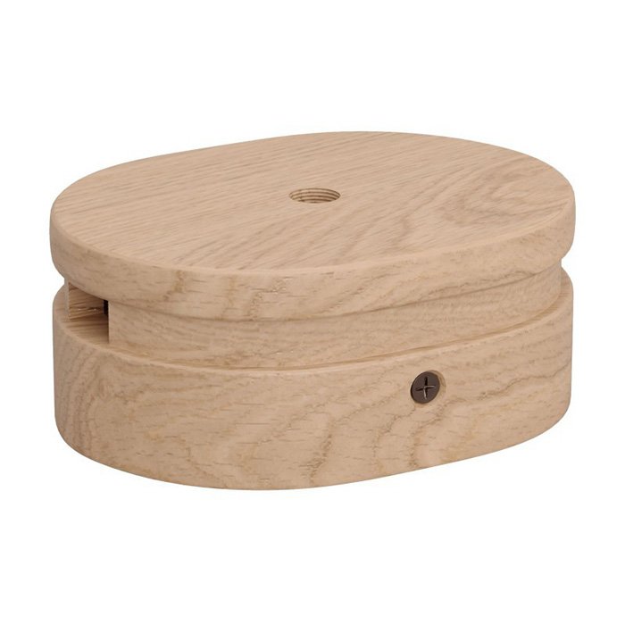 Dřevěný rozbočný baldachýn na světlo se třemi otvory (1x spodní + 2x po obvodu) a označením T3-Woodet vyjadřuje spojení funkčnosti, řemeslné tradice a vytříbeného designu. Slouží jako elegantní krycí a spojovací prvek pro rozbočení kabeláže povrchové elektroinstalace a zároveň umožňuje zavěšení svítidla z centrálního bodu. Díky kompaktním rozměrům 110 × 80 mm zajišťuje čisté a přehledné připojení elektrických kabelů různých tvarů z více směrů.