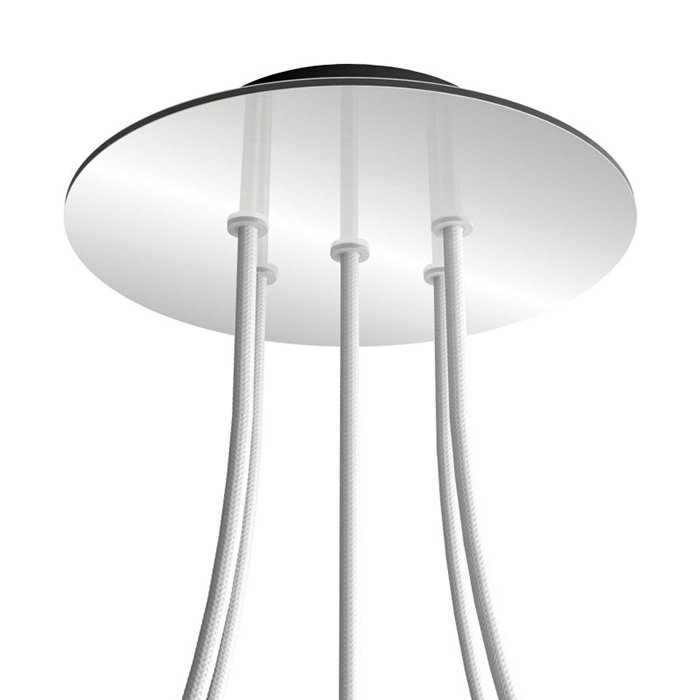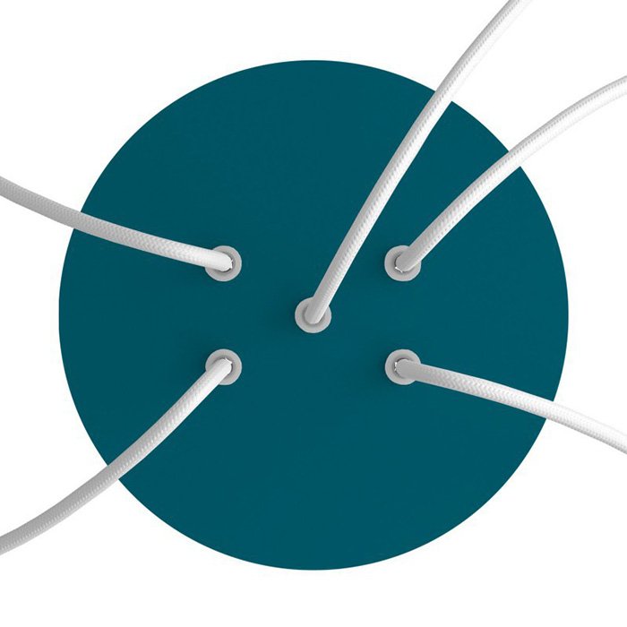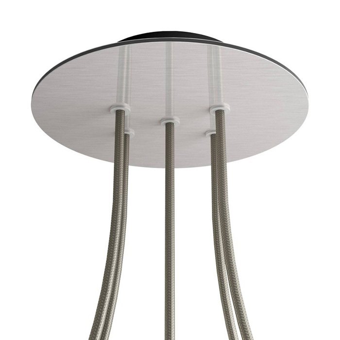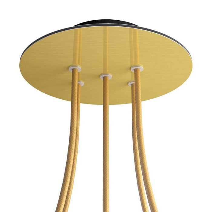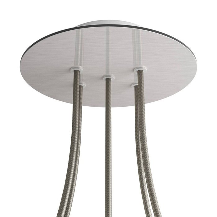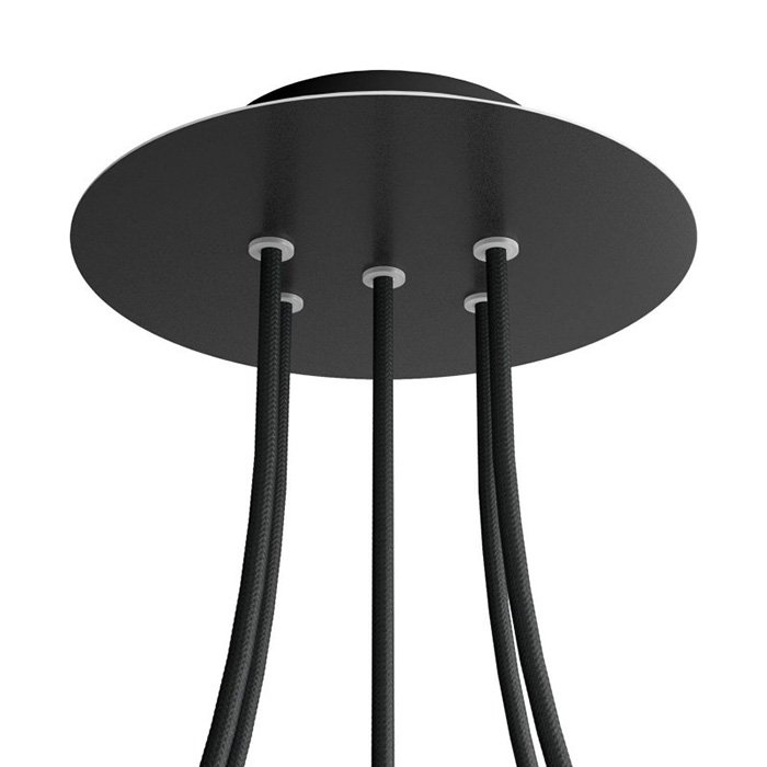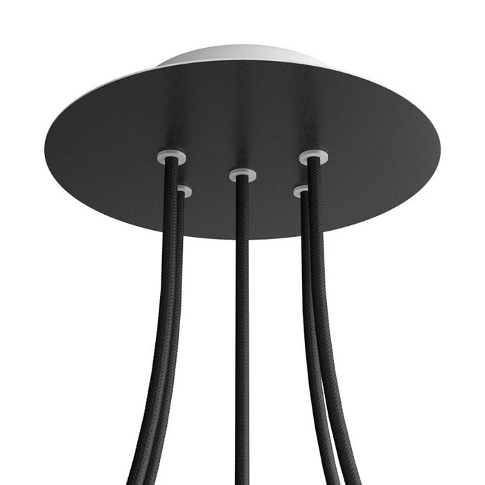 Kovová stropní rozeta na lustr s pěti kabelovými vývody (ve spodní části) I5-Metalrose je určena pro elektrické kabely o průměru 5-7mm. Z naší nabídky můžete vybrat kabely a komponenty COMPACT 62, se kterými získáte téměř neomezené možnosti pro individuální výrobu svítidel a kreativních světelných řešení.