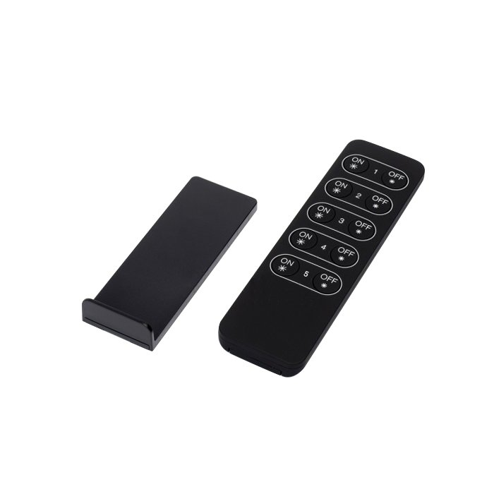 - 1/2 - RF bezdrátový dálkový ovladač SR-2833K5 - slouží jako ovládací prvek a koncové zařízení pro spínání a ovládání světel či elektronických systémů.