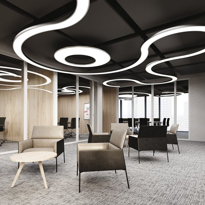Vlnovité stropní LED svítidlo KLUŚ MI-SNAKE-03 je součástí unikátního systému MIFOR. Inspiraci jeho špičkové modularity a variability v délce, tvaru i rozmístění světelných prvků můžete načerpat v #tablink#videa#produktovém videu##. Tento systém je ideální pro tvorbu polygonálních, svěšených stropních svítidel, přizpůsobených konkrétním požadavkům investora.