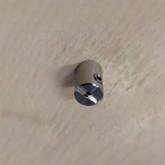- Produkt je navržen pro instalaci do zvoleného materiálu (do plastových nebo dřevěných povrchů převrtejte otvor Ø3mm, do hliníkových povrchů vyvrtejte otvor Ø3,5mm) prostřednictvím předvrtaného otvoru, který umožňuje snadný přístup a upevnění z pohledové strany.