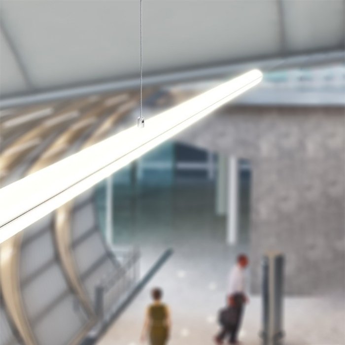Individuální výroba svítidel s jejich zavěšením skrze kompatibilní #tablink#montaz#ocelové lanko## poskytuje svobodu v navrhování svítidel a jejich umístění v prostoru, aniž by byl narušen estetický dojem.