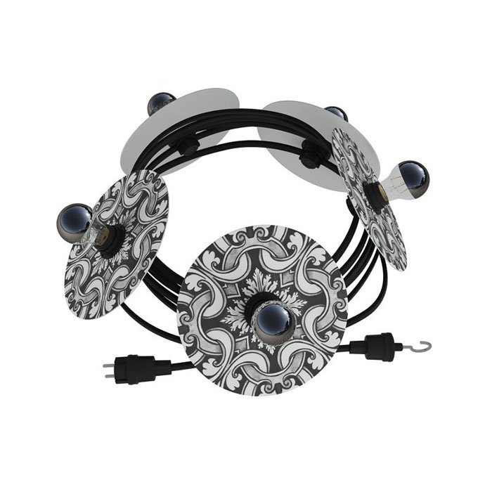 Přenosný venkovní světelný řetěz na žárovky s připojením do zásuvky Lumet Maioliche IP44 je vyroben z termoplastových komponent. Přibalený venkovní textilní kabel je možné v případě potřeby upravit na požadovanou délku. Originalitu a hravost mu propůjčuje také stínidlo Maioliche s ø 24cm.