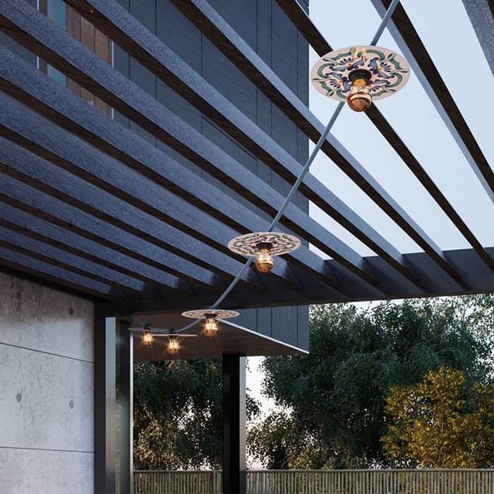 Venkovní žárovkový světelný řetěz s připojením do zásuvky Lumet Maioliche IP44 patří do jedinečné kolekce systému LUMET, která zahrnuje mimořádnou variabilitu a modularitu při sestavování vlastní světlené girlandy nebo světleného řetězu na míru. Bezpečnost produktů je nositelem certifikátu CE a byla testována nezávislými laboratořemi podle nejpřísnějších předpisů. Jednoduše kvalita, design a výroba MADE IN ITALY.