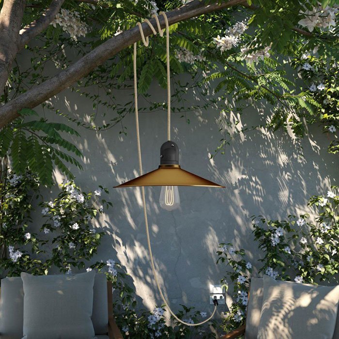 Závěsný venkovní lustr s kabelem do zásuvky EIVA SNAKE SWING IP65 sestavíte a zapojíte snadno. Vše ve stylu Plug and Play. Pro uchycení textilního kabelu k povrchu doporučujeme naše úchytky kabelu.