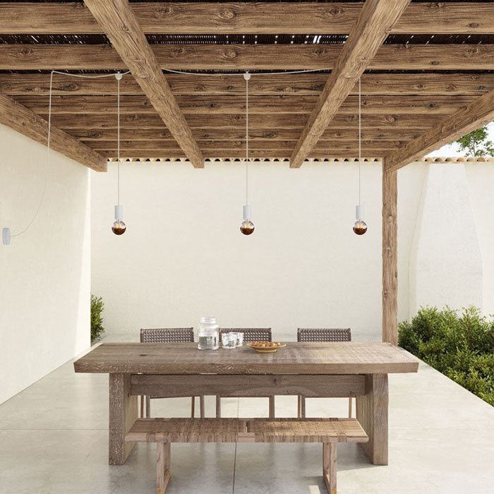 Hledáte venkovní závěsné objímky do pergoly nebo altánu, nebo toužíte po svítidle s osobitým stylem pro osvětlení terasy? Skvěle, na trhu nenajdete podobné venkovní svítidlo na žárovky E27. Jeden malý tip na závěr. Venkovní objímky na žárovky s kabelem EIVA Elegant IP65 jsou vhodné také jako osvětlení nad venkovní jídelní stůl.