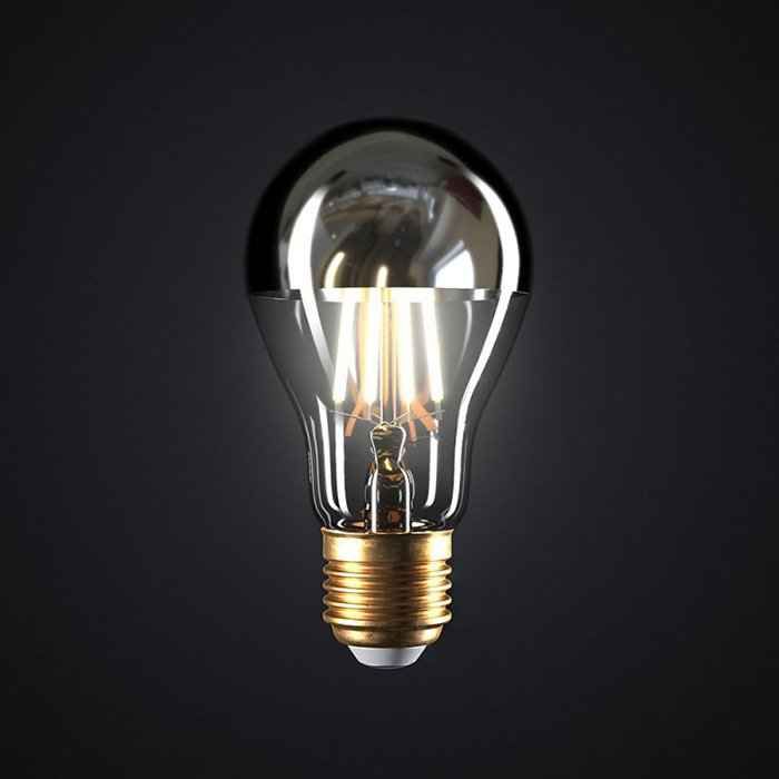 - A60 Stmívatelná LED žárovka se stříbrným zrcadlovým vrchlíkem E27 | 230V