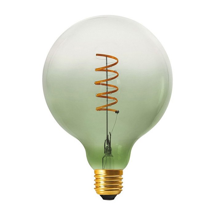 Stmívatelná dekorační žárovka E27 závitu s produktovým označením Confetti Green o příkonu 4W přináší doslova revoluci v estetickém vzhledu žárovek. Vzhledem k oblíbenému tvaru tónované skleněné baňky G125 (Globe - v nejširší části Ø 125mm) je skvělou alternativou do všech závěsných svítidel s objímkou E27. To co dělá žárovku Confetti Green mimořádným prvkem světlené dekorace je tvarování světleného vlákna do spirály. Mistrovským dílem je rovněž tónované dvoubarevné sklo baňky v kombinaci barev zelená + transparentní. Při rozsvícení dekorativní žárovky máte možnost pozorovat dokonalou hru barev a světla charakteristiky: