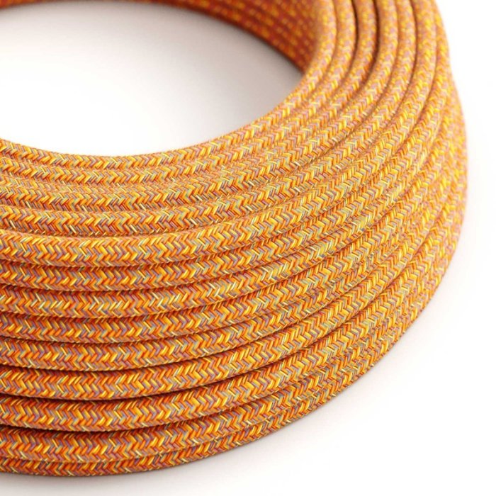 Vzorovaný látkový kabel 2x0,75 mm s produktovým označením CottonRixet RX07 je určen pro pevné instalace v elektrických sítích 230 V. Vhodný je zejména pro dekorativní interiérová svítidla nebo světlené sestavy, kde naplno vynikne jeho mnohobarevné provedení i precizní zhotovení a zároveň není vyžadován ochranný vodič (PE). Díky měděným lankovým vodičům v kulatém provedení, dvojité PVC izolaci a preciznímu zpracování nabízí kabel vysokou míru bezpečnosti, flexibilitu a nadstandardní mechanickou odolnost s nosností kabelu pro zavěšená svítidla až 2,25 kg. Vzorovaný povrch z jemné Cotton (bavlna) látky dodává kabelu mimořádný vzhled, díky kterému se stává nejen funkčním, ale i estetickým prvkem interiéru. Využijte 2x0,75 mm vzorovaný oranžový látkový kabel RX07 pro individuální či malosériovou výrobu originálních svítidel či osvětlovacích sestav s důrazem na design a detail.
