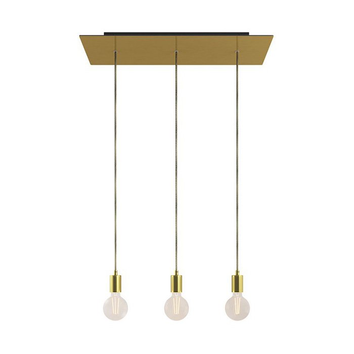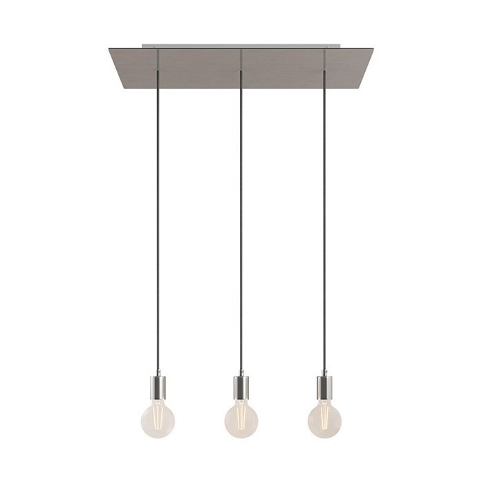 Žárovkový lustr 3x E27 patří mezi fascinující závěsná stropní svítidla. Odhalené žárovky lustru vytváří v prostoru neuvěřitelný scénografický efekt. Lustr s objímkami vyniká mimořádně kvalitním zpracováním a materiály, které prošly důkladnou selekcí. Naším cílem bylo jednoduše stvořit dokonalý velký žárovkový lustr, který zaujme všechny kreativní duše. Detailing velkého žárovkového lustru doplňují kovové komponenty, jako například 3x objímky žárovek a XXL stropní rozeta Rose One. Nezaměnitelný charakter lustru dodávají designové textilní kabely v délkách 120 cm. Kabely lustru lze při montáži svítidla snadno zkrátit na požadovanou délku. Všechny součásti lustru v moderním stylu nesou známky vysoké technické kvality a mimořádného designu. Vyrobeny jsou MADE IN ITALY.