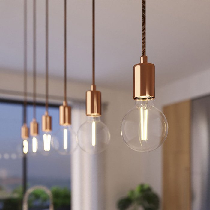 - rozeta: měděný saténový Dibond | ve variantě se žárovkami: [BB-E04] LED, G95, 4W, 470 Lm, 2700K, E27