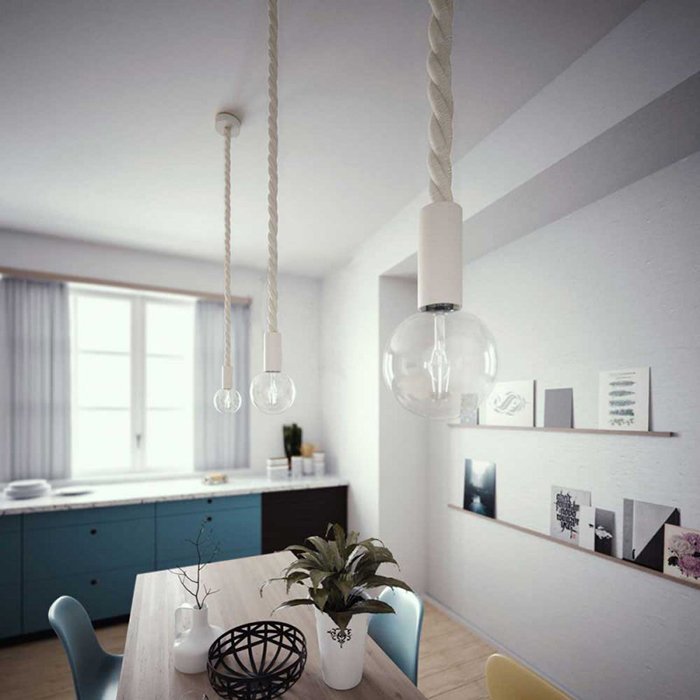 Dřevěná E27 závěsná objímka s lanovým kabelem Puntoara-3XL