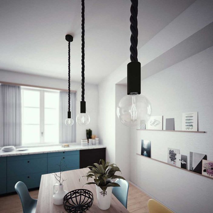 - Lanový kabel 3x 0,75 mm s délkou ≈ 1,2 m a Ø 30 mm - ve splétaném provedení, které perfektně ladí s ostatními komponenty. Délku lze upravit jednoduchým zkrácením podle potřeb prostoru.