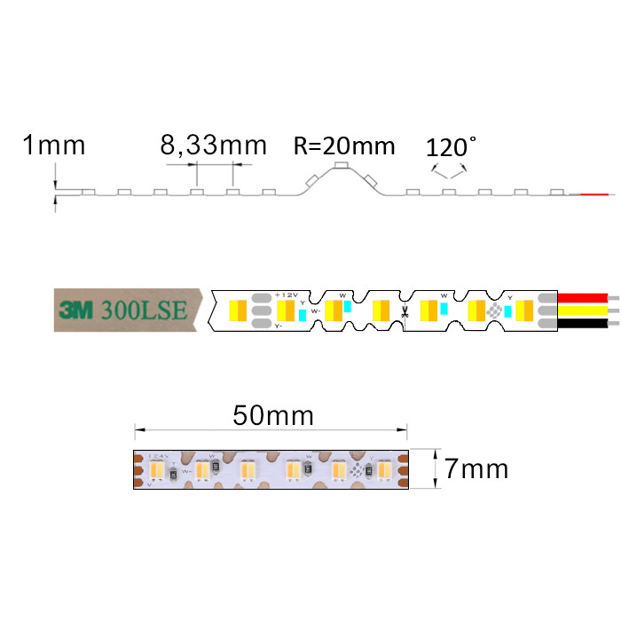 Ohebný CCT LED pásek 24V od renomovaného výrobce Lux Miners poskytuje vysokou kvalitu zpracování s důrazem na špičkové mechanické vlastnosti, jemnou dělitelnost jednotlivých modulů pásku a vynikající světelné parametry. Při jeho vývoji a výrobě byl kladen důraz na dosažení maximální světelné účinnosti (Lm/W) a přesnou reprodukci barev s indexem CRI90+. CCT pásek CCT24120E, označovaný také jako CCT S-Bend, se díky perforovanému plošnému spoji o šířce pouhých 7mm vyznačuje výjimečnou flexibilitou s možností ohnutí a tvarování. Je určen pro širokou škálu aplikací včetně možnosti výroby LED NEON nápisů.