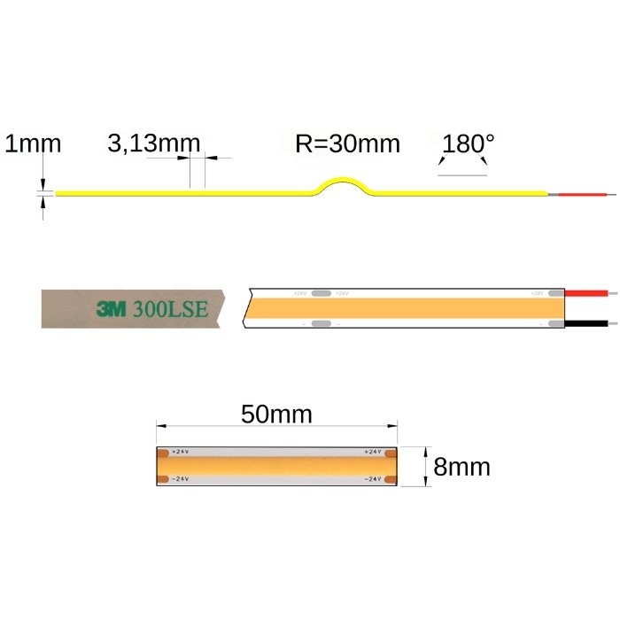 Doplňující technické informace pro žlutý COB 24V LED pásek COB-SC24480E